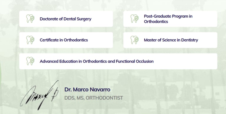 Showcasing Dr. Marco Navarro Flores' orthodontic expertise and achievements.